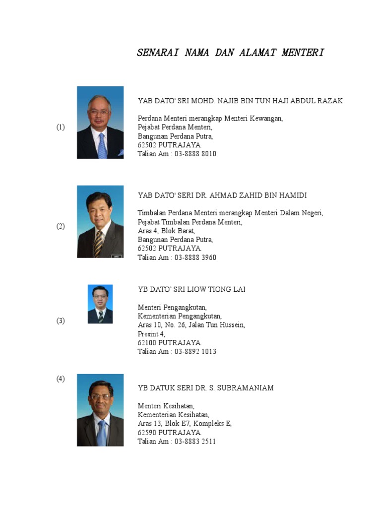 Senarai Nama Dan Alamat Menteri Doc Document