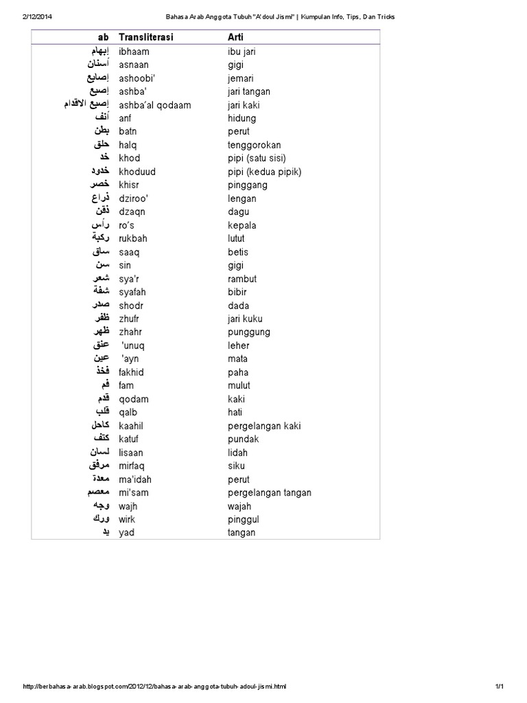 Com ingin menyampaikan artikel bahasa arab yang baik pada anggota tubuh.