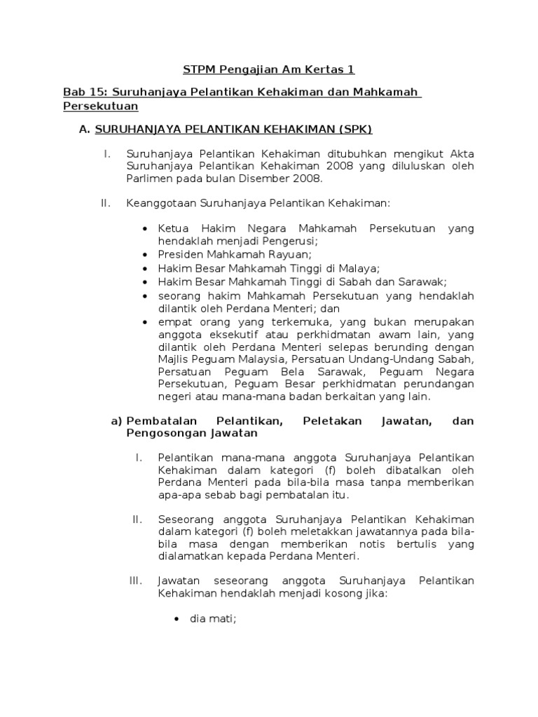 Stpm Pengajian Am Kertas 1 Suruhanjaya Pelantikan Kehakiman Mahka