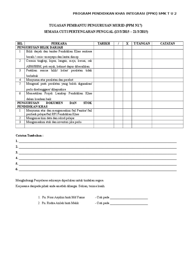 Pdf Surat Pemakluman Bpsm Senarai Tugas Ppm Pasoh Lan Academia Edu