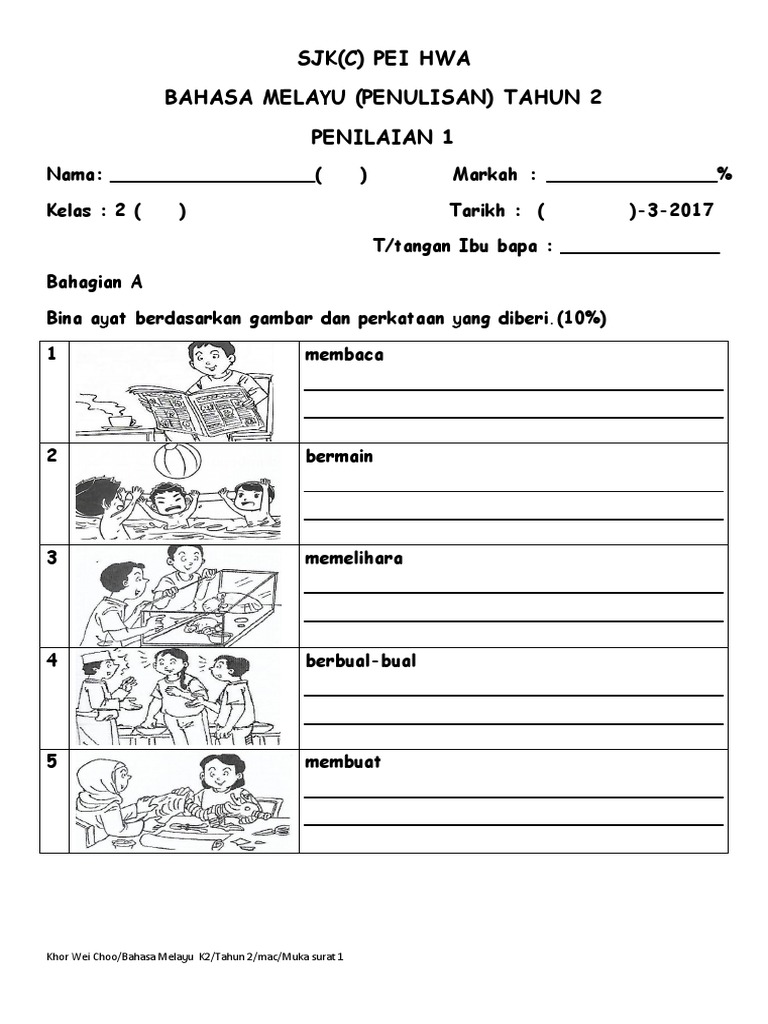 Sjk C Pei Hwa Bahasa Melayu Penulisan Tahun 2 Penilaian 1