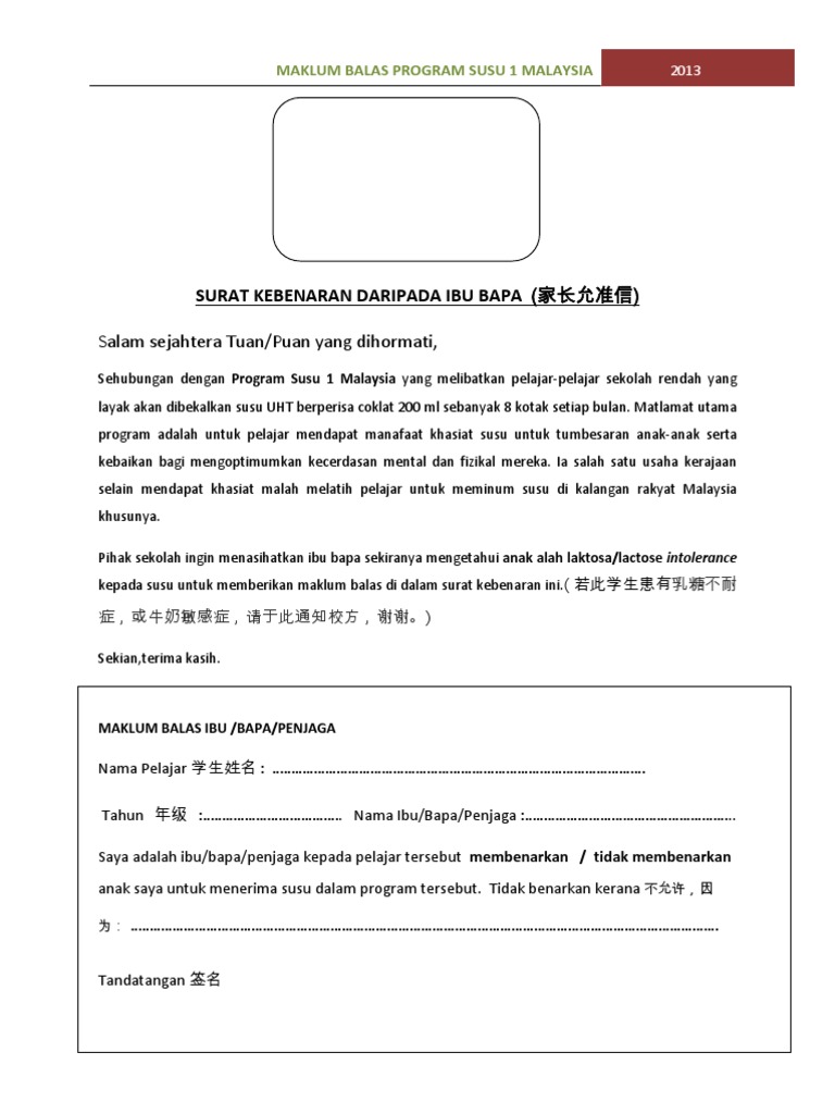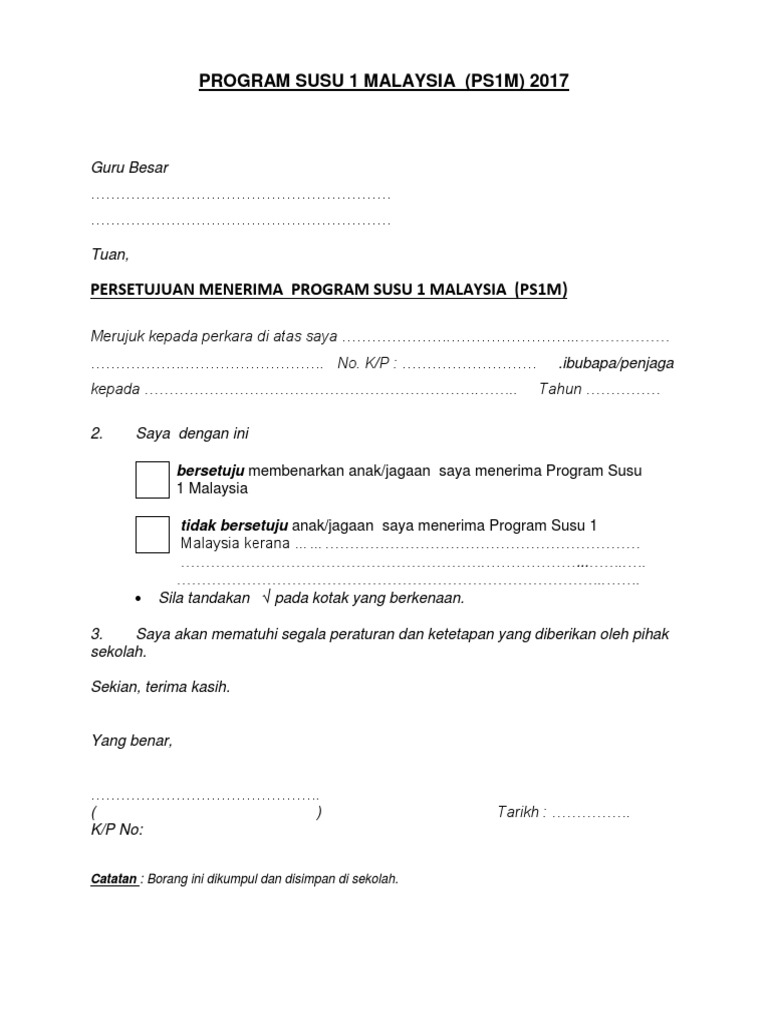 Surat Kebenaran Minum Susu Ps1m Daripada Ibu Bapa