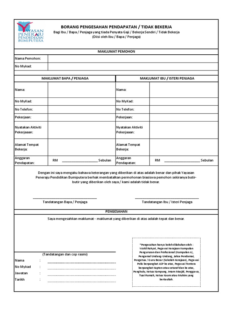 Borang Pengesahan Pendapatan Tidak Bekerja