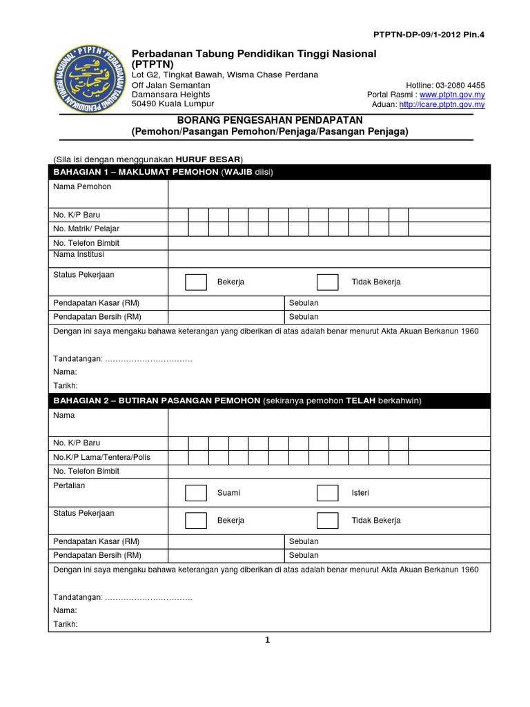 Borang Pengesahan Pendapatan Pemohon Pasangan Pemohon Penjaga Pasangan Penjaga Pin 4 03032014