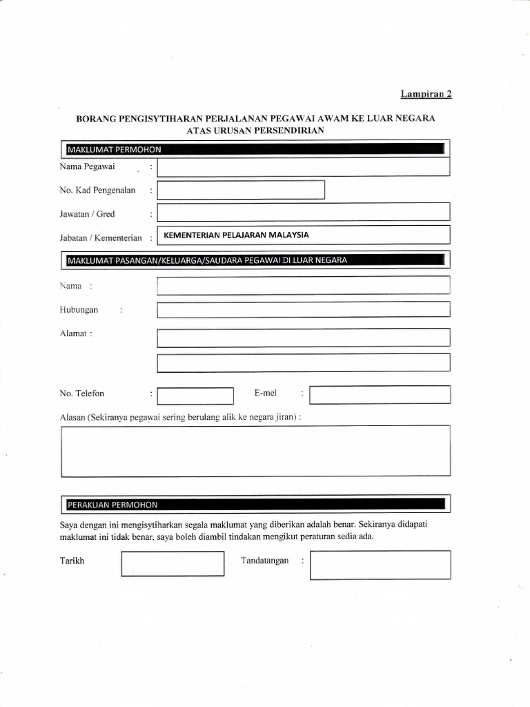 Borang Permohonan Perjalanan Ke Luar Negara Lampiran 1