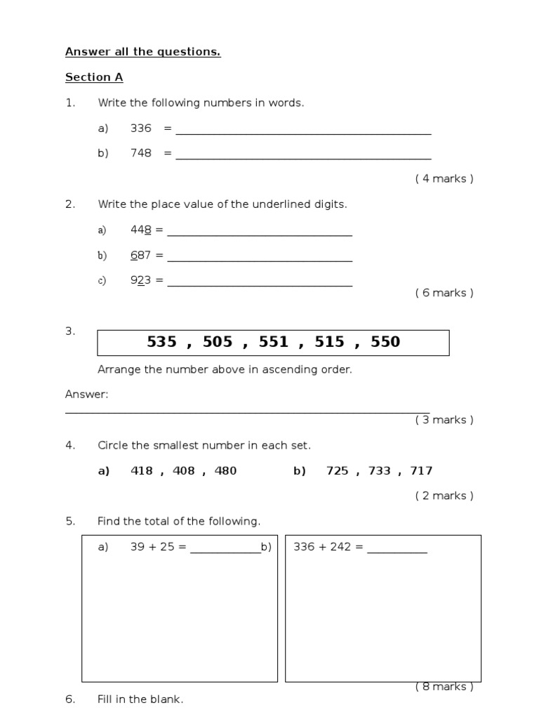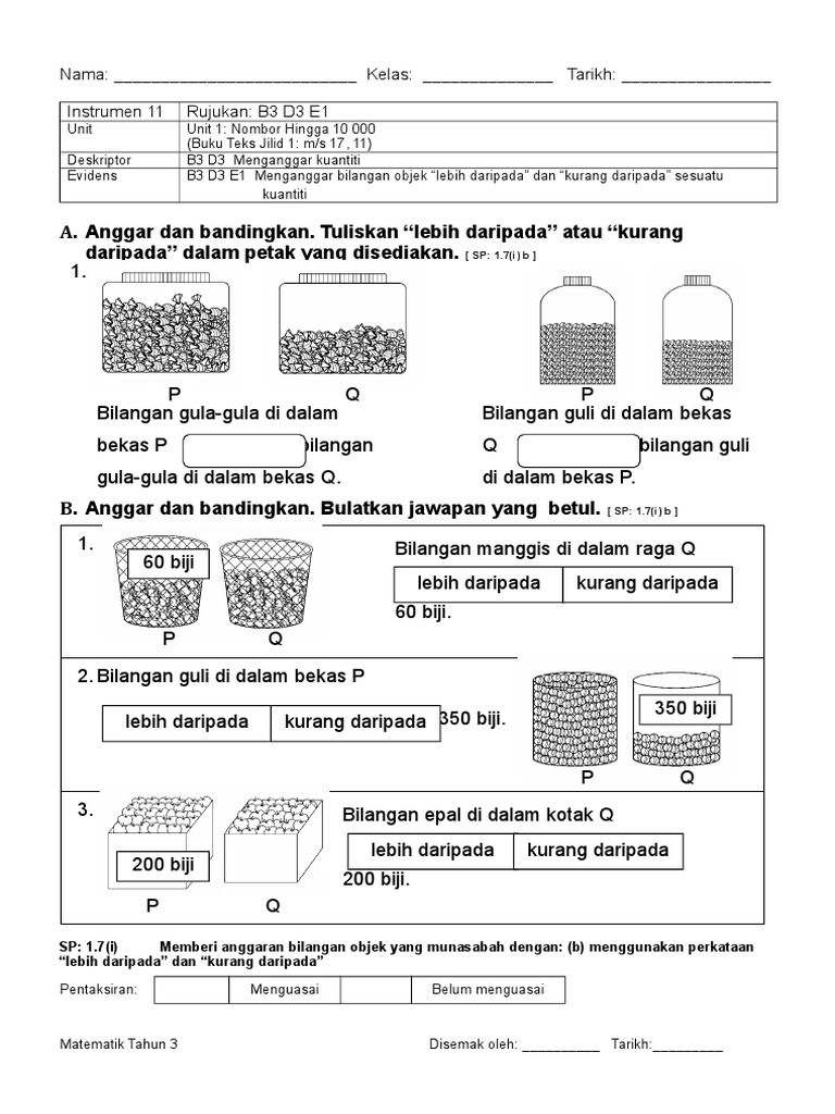 Soalan Matematik Penilaian 1 Tahun 2 Mathematics