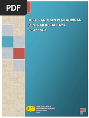 Buku panduan pentadbiran kontrak kerja raya edisi keempat. 1 2 skop 1 2 1 buku panduan ini mengandungi prosedur pengurusan perolehan dan pentadbiran kontrak bagi pembinaan kerja secara konvensional berdasarkan borang syarat syarat kontrak p w d. Pentadbiran kontrak dalam perolehan kerajaan secara am. Ba b 1 l a m p i ran s i n g k a t an. Kementerian kerja raya tingkat 1 14 kompleks kerja raya jalan sultan salahuddin 50580 kuala lumpur.