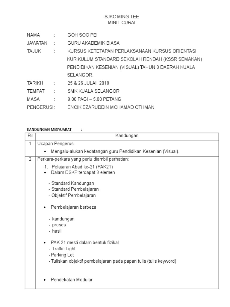 Minit Curai Kursus Kssr Pendidikan Kesenian Thn 3 2019