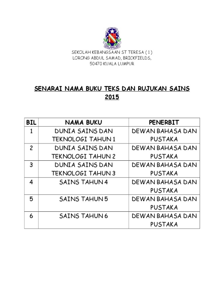 Senarai Buku Teks Sains