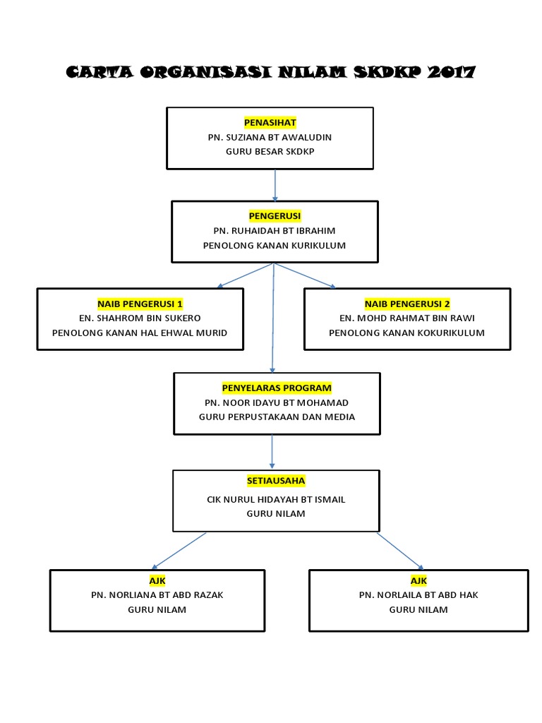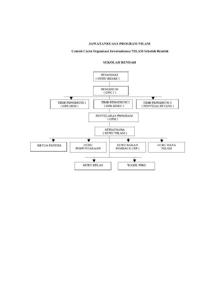 Carta Organisasi Jawatankuasa Program Nilam Peringkat Sekolah Doc