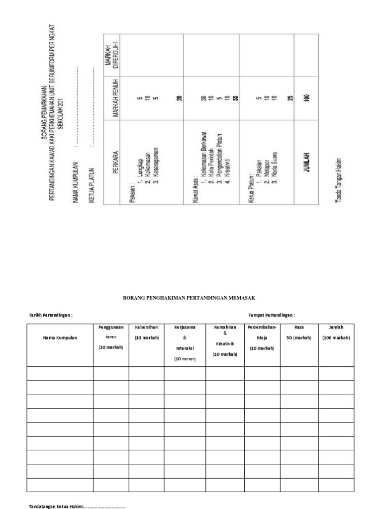 Image Result For Borang Pemarkahan Pertandingan Memasak Image