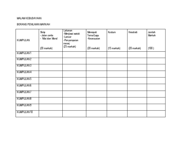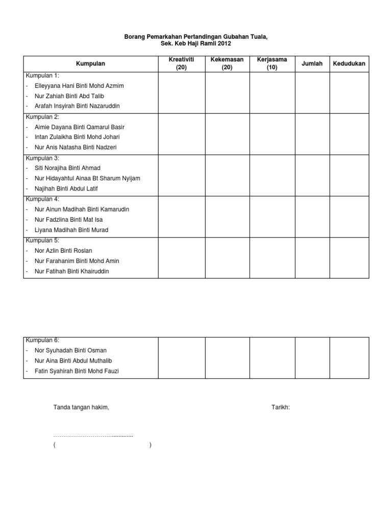 Contoh Borang Pemarkahan Pertandingan Asrama Terbuka Cute766