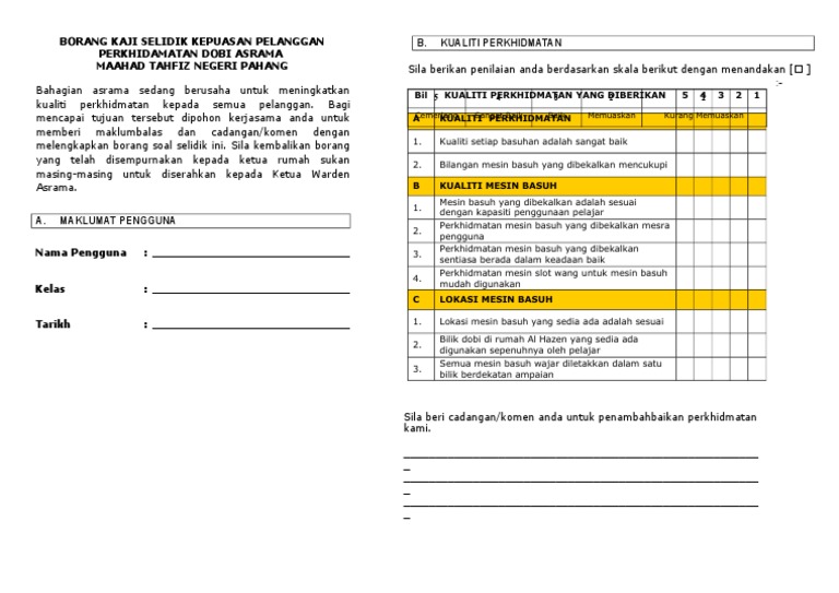 Borang Soal Selidik Kepuasan Pelanggan Borang Kaji Selidik Kepuasan Pelanggan Unit Pos Kenderaan Bahagian Pentadbiran Bahagian Ini Sedang Berusaha Course Hero