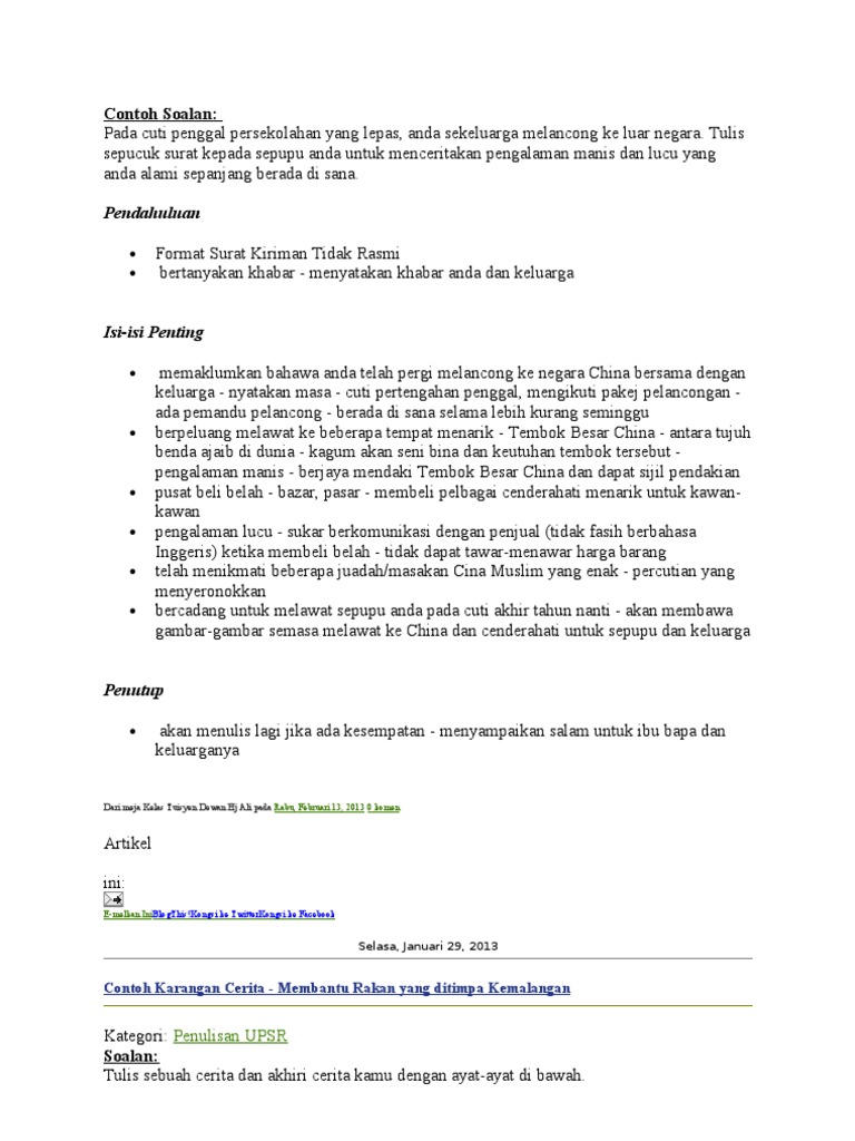 Contoh Karangan Spm Surat Rasmi Lawatan Rumah Aoi