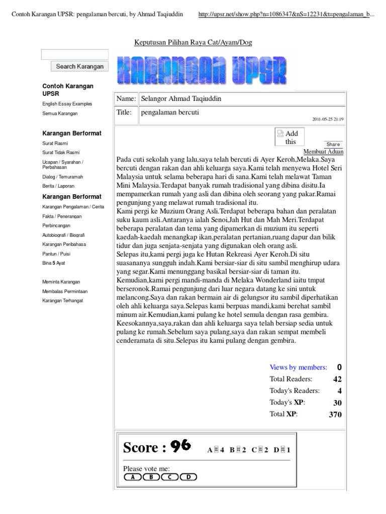 Contoh Karangan Upsr Pengalaman Bercuti By Ahmad Taqiuddin