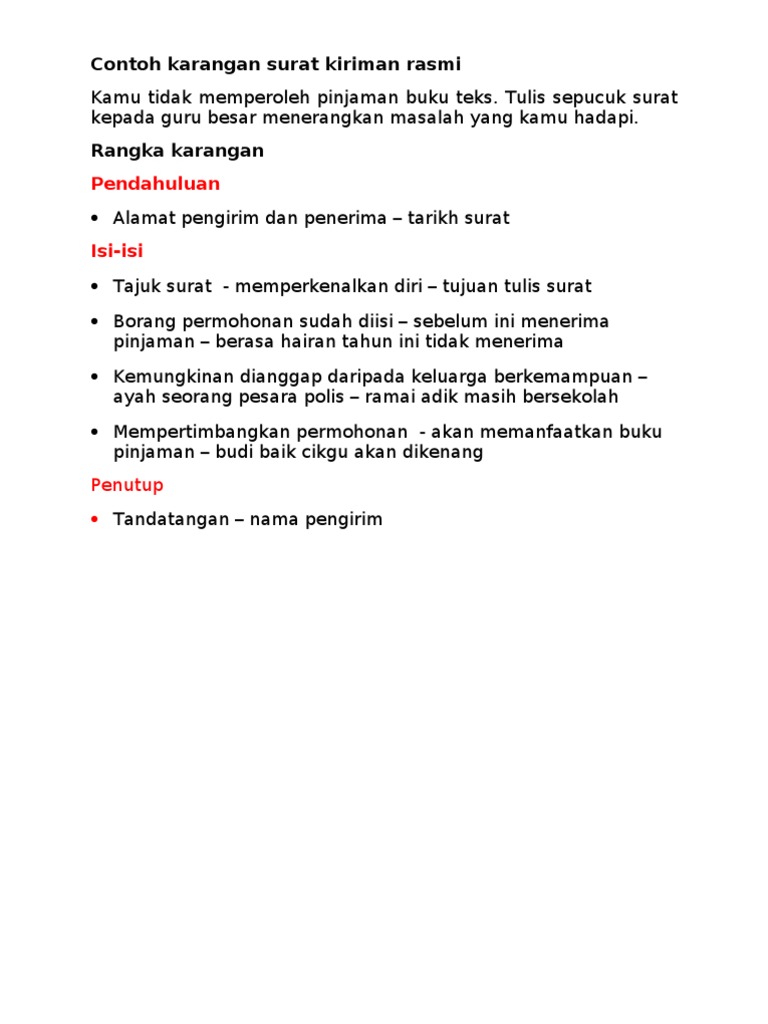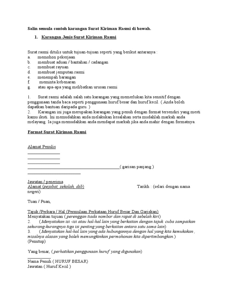 Contoh Karangan Surat Kiriman Rasmi Di Bawah Doc