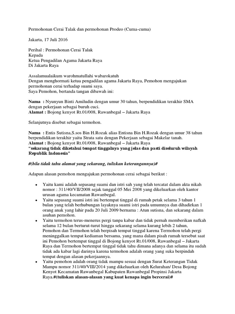 Permohonan Cerai Talak Dan Permohonan Prodeo Docx