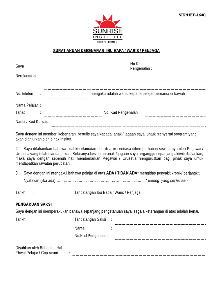 Contoh Surat Akuan Bujang Dunia Belajar