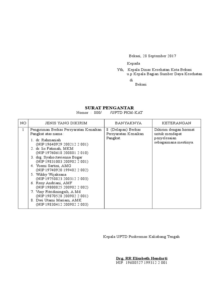 Contoh Surat Pengantar Kenaikan Golongan