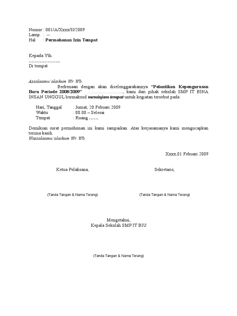 Contoh Surat Permohonan Izin Penggunaan Tempat Pdf