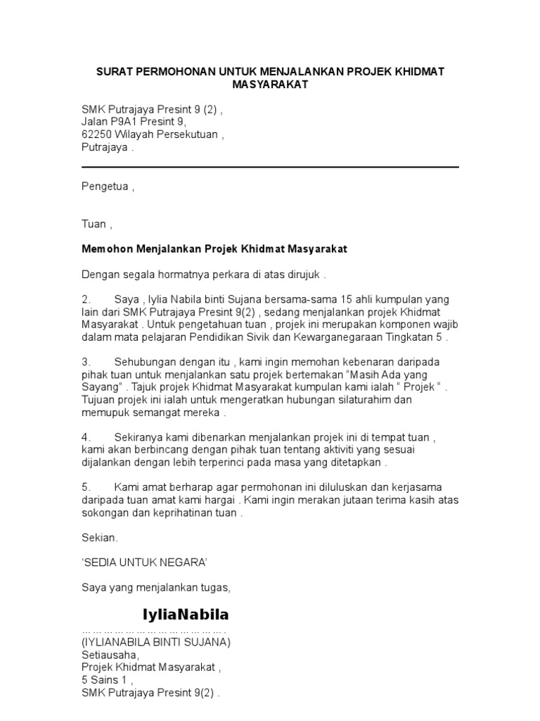Surat Kebenaran Menjalankan Projek Khidmat Masyarakat