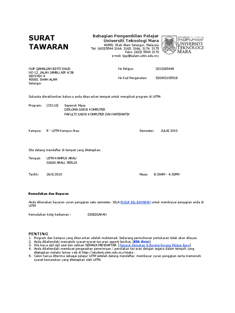 Surat Tawaran Uitm Cute766