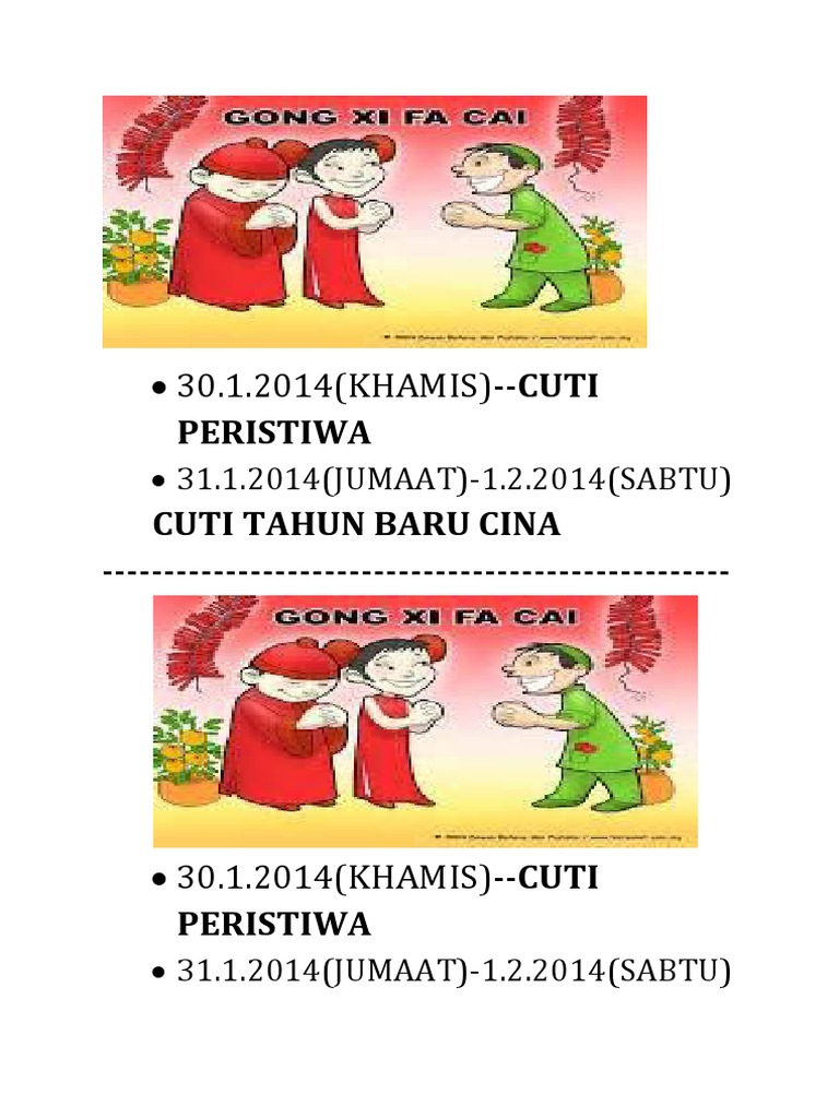 Tahun Baru Cina Cuti 2019 Jawat Koso