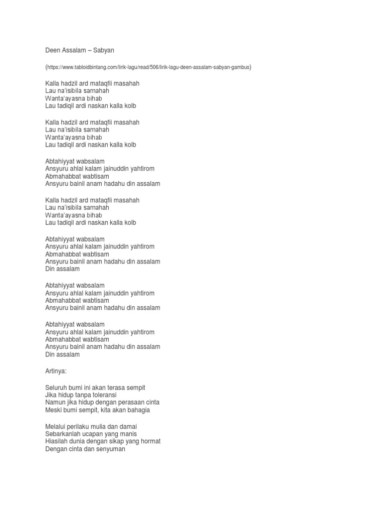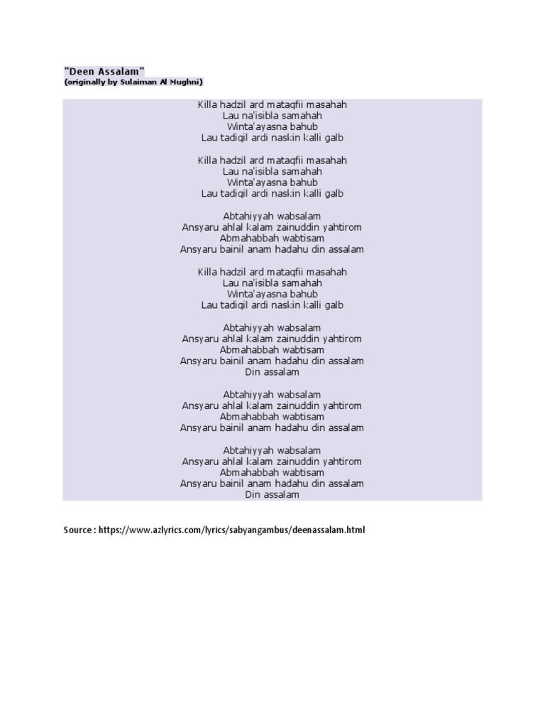 Lirik Lagu Deen Assalam Info Dan Tips
