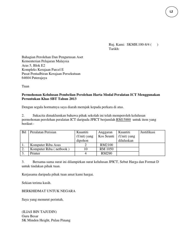 Format Surat Perolehan Permohonan Kelulusan Ict 1