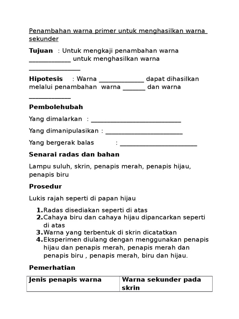 7 10 5a Penambahan Dan Penolakan Cahaya Berwarna Soalan Subjektif Sains Spm