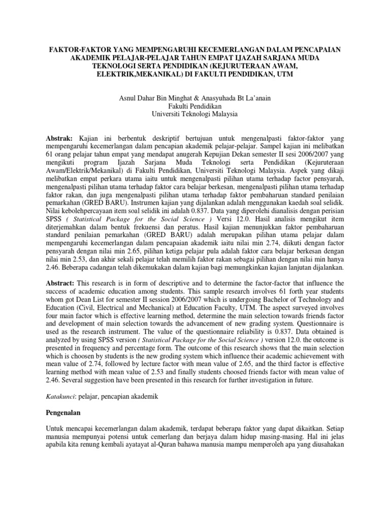 Faktor Faktor Yang Mempengaruhi Kecemerlangan Dalam Ian