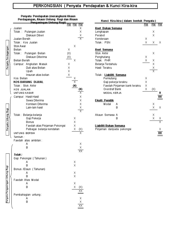 Format Penyata Pendapatan Dan Kunci Kira Kira