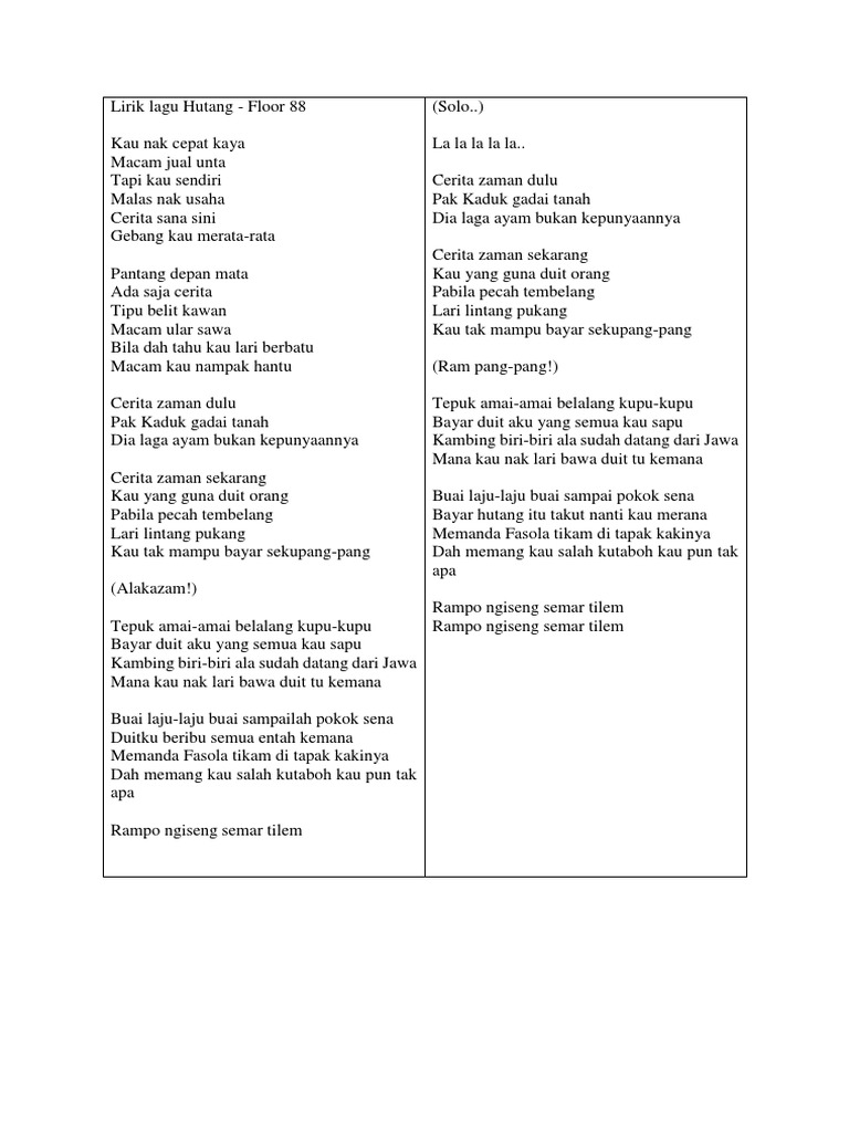 Lirik Lagu Floor 88 Hutang Tepuk Amai Amai Belalang Kupu Kupu