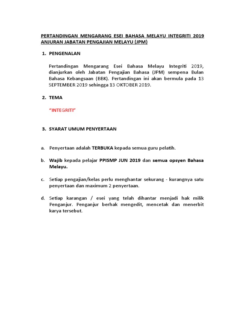 Contoh Karangan Laporan Minggu Cintai Bahasa Kebangsaan Sinter B