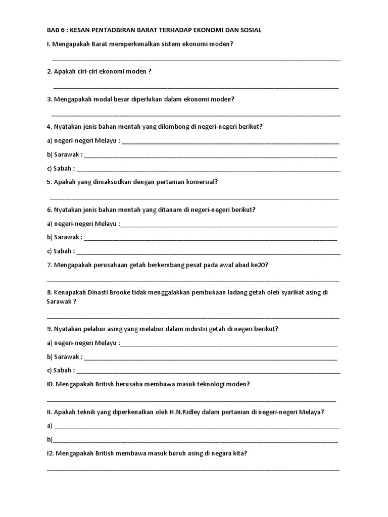 Kesan Pentadbiran Barat Terhadap Ekonomi Dan Sosial Tingkatan 3