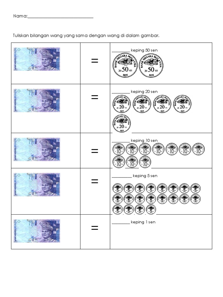 Lembaran Kerja Matematik Tahun 1 Duit Doc