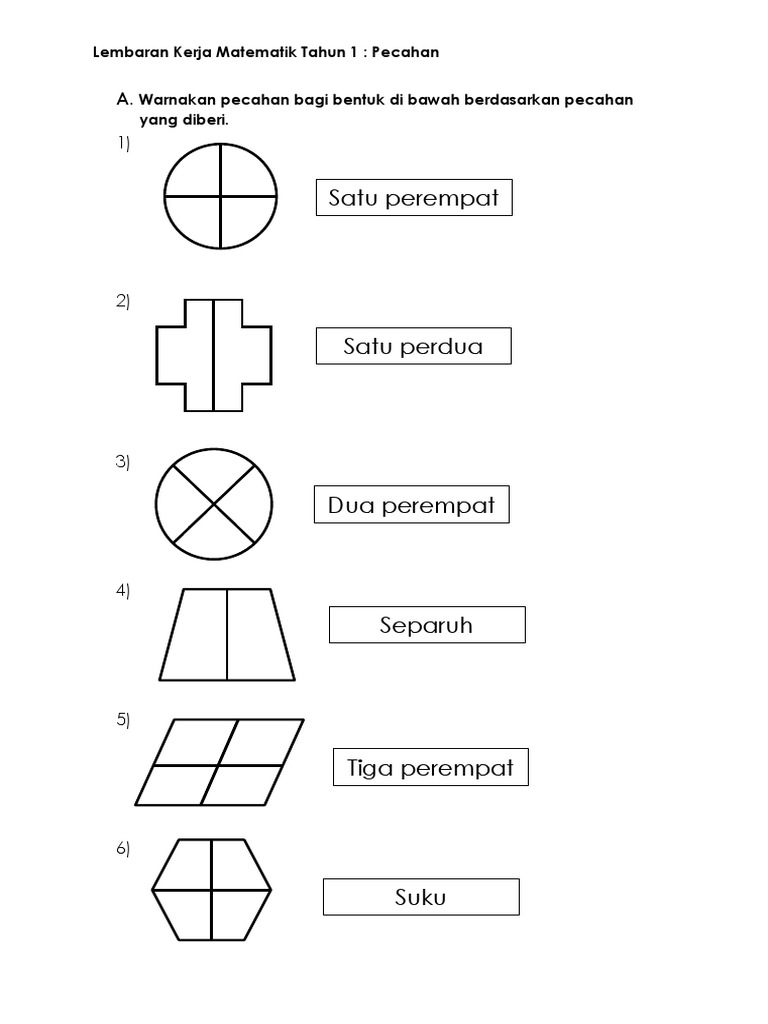 Lembaran Kerja Matematik Tahun 1 Pecahan