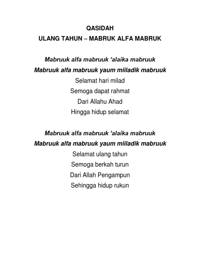 Lirik Lagu Mabruk Alfa Mabruk Selamat Ulang Tahun Hrs Lirik Sholawat Nabi In 2020 Friend Birthday Quotes Self Reminder Quotes