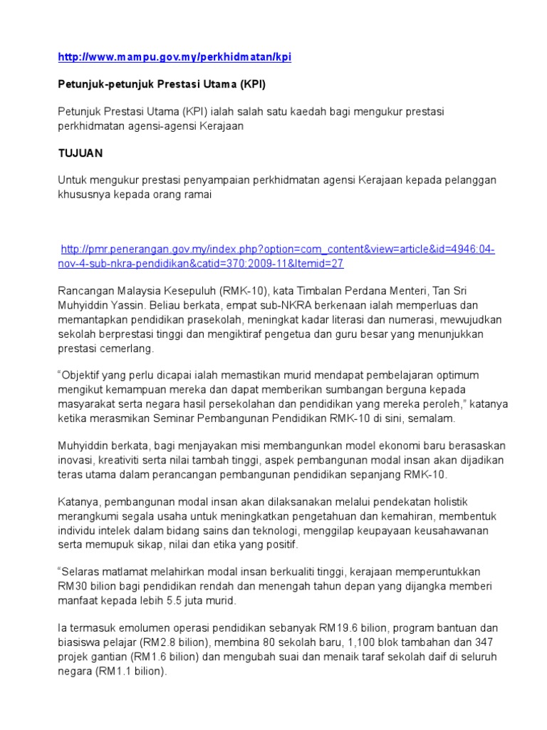 Petunjuk Petunjuk Prestasi Utama Kpi Nov 4 Sub Nkra Pendidikan Catid 370 2009 11 Itemid 27