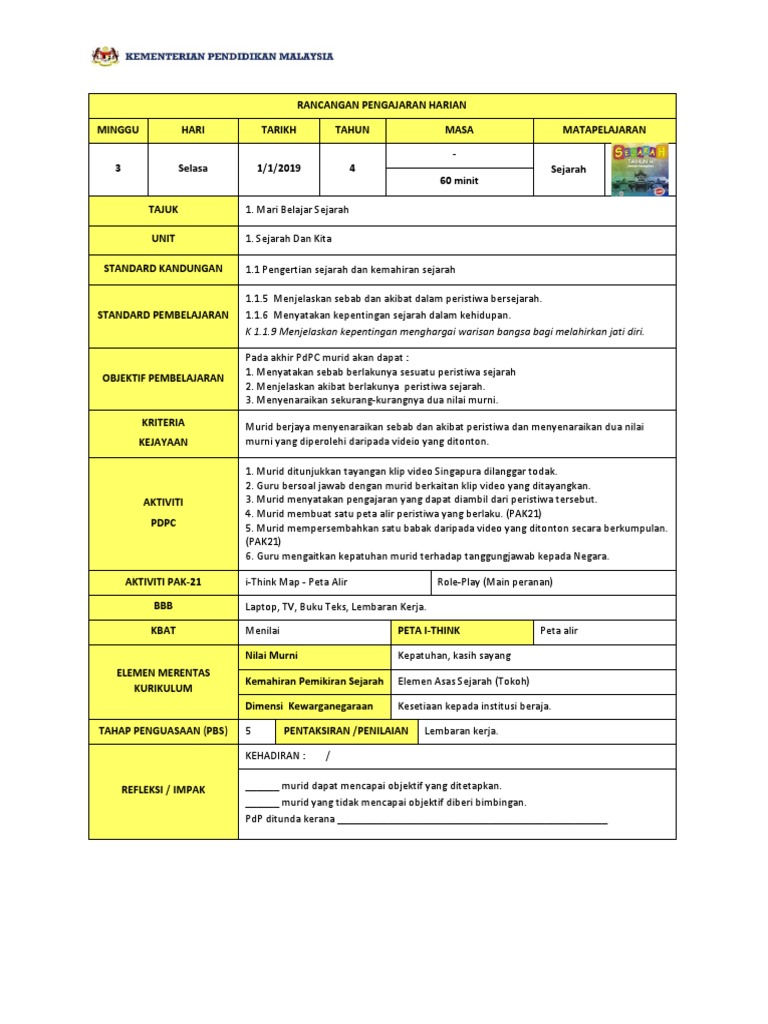 Mata Pelajaran Dan Kelas Sejarah Tahun 4