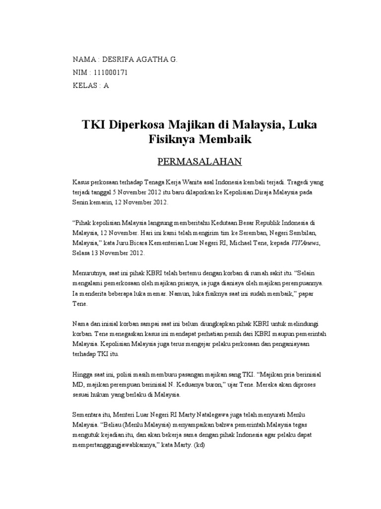 Tki Diperkosa Majikan Di Malaysia Luka Fisiknya Membaik Permasalahan