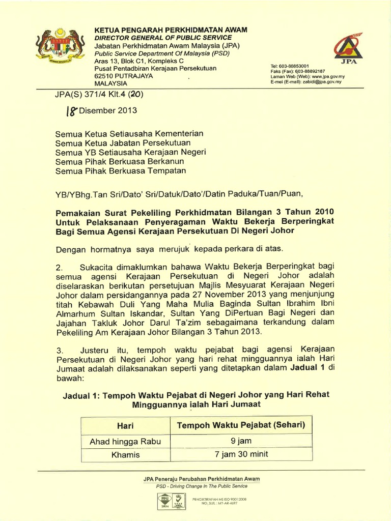 Penambahbaikan Waktu Bekerja Berperingkat Wbb Penjawat Awam 2018 Infomalay12 Blogspot Com Info Malay
