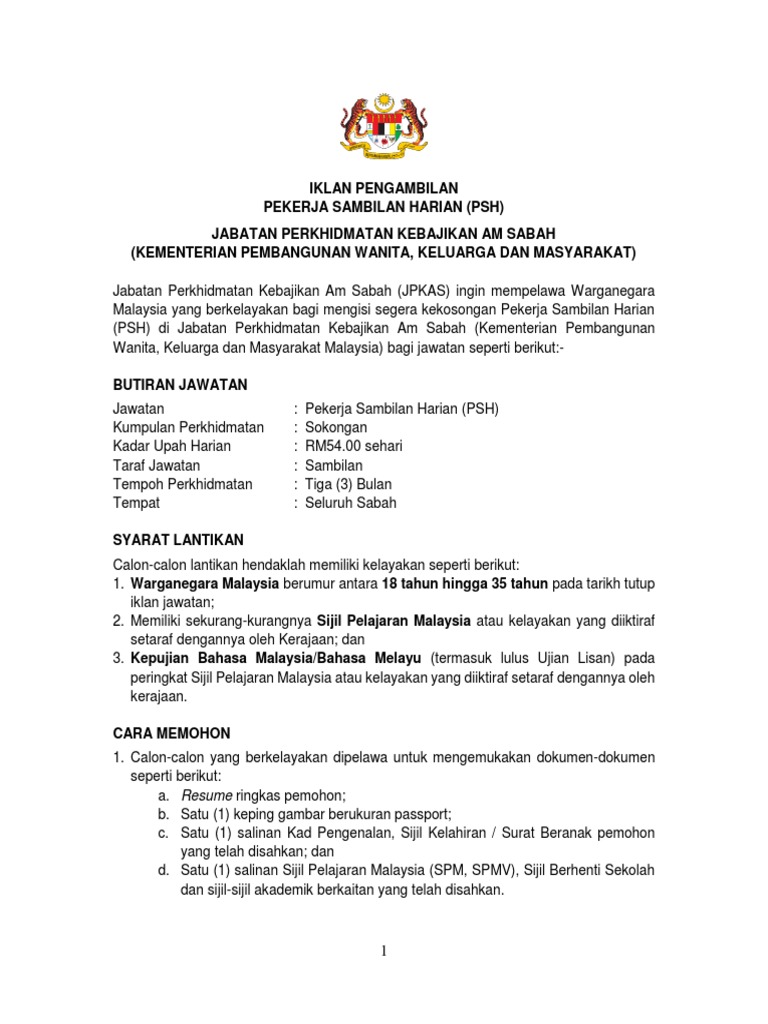 Pekerja Sambilan Harian Diperlukan Sila Jobsmalaysia Pahang Facebook