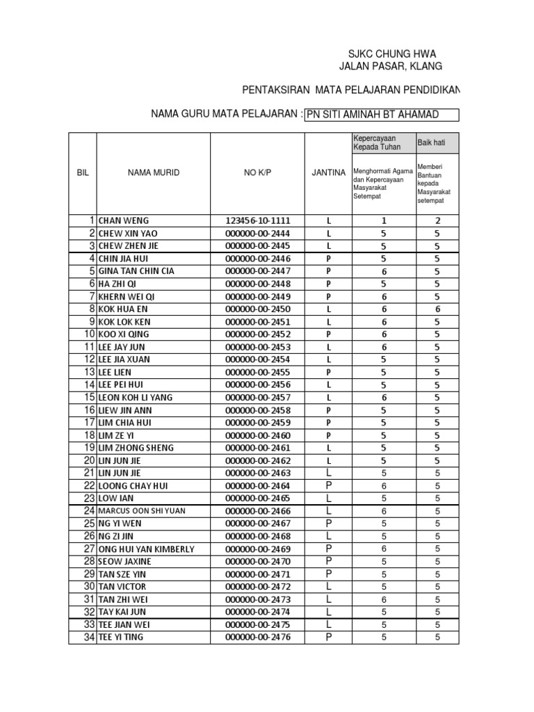 Pelaporan Dskp Kssr Tahun 5 Pendidikan Moral