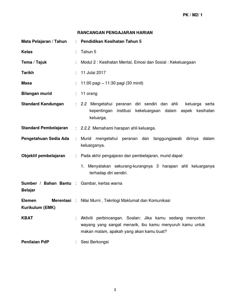 Rph Pk Tahun 2 Pendidikan Kesihatan Sumber Pendidikan 23 Kekeluargaan