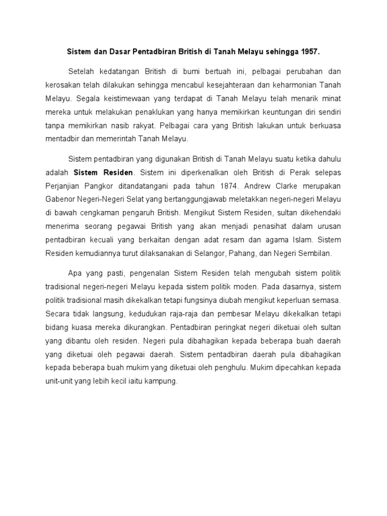 Pentadbiran British Di Tanah Melayu Pdf