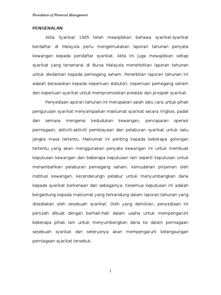 Kerja Kursus Pengajian Perniagaan Nisbah Kewangan