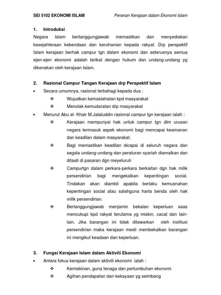 1 Introduksi Sei 5102 Ekonomi Islam Peranan Kerajaan Dalam Ekonomi Islam