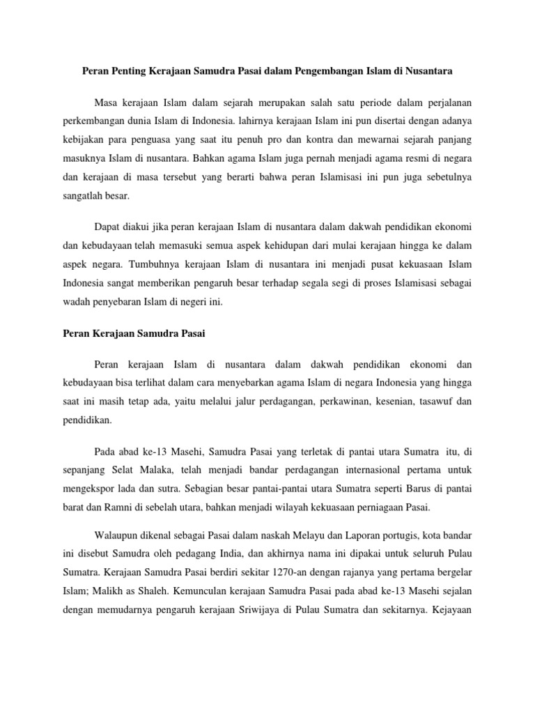 Peran Penting Kerajaan Samudra Pasai Dalam Pengembangan Islam Di Indonesia