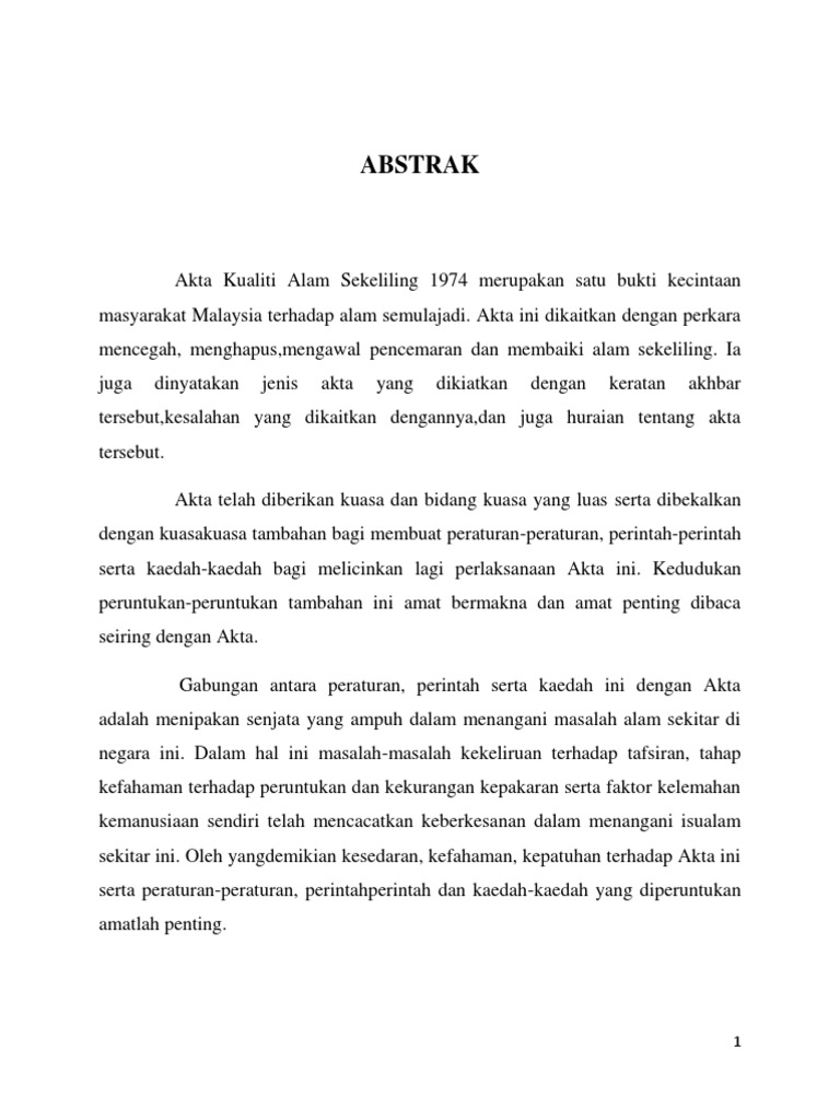 My Environment Akta Kualiti Alam Sekeliling 1974 Bahagian 1